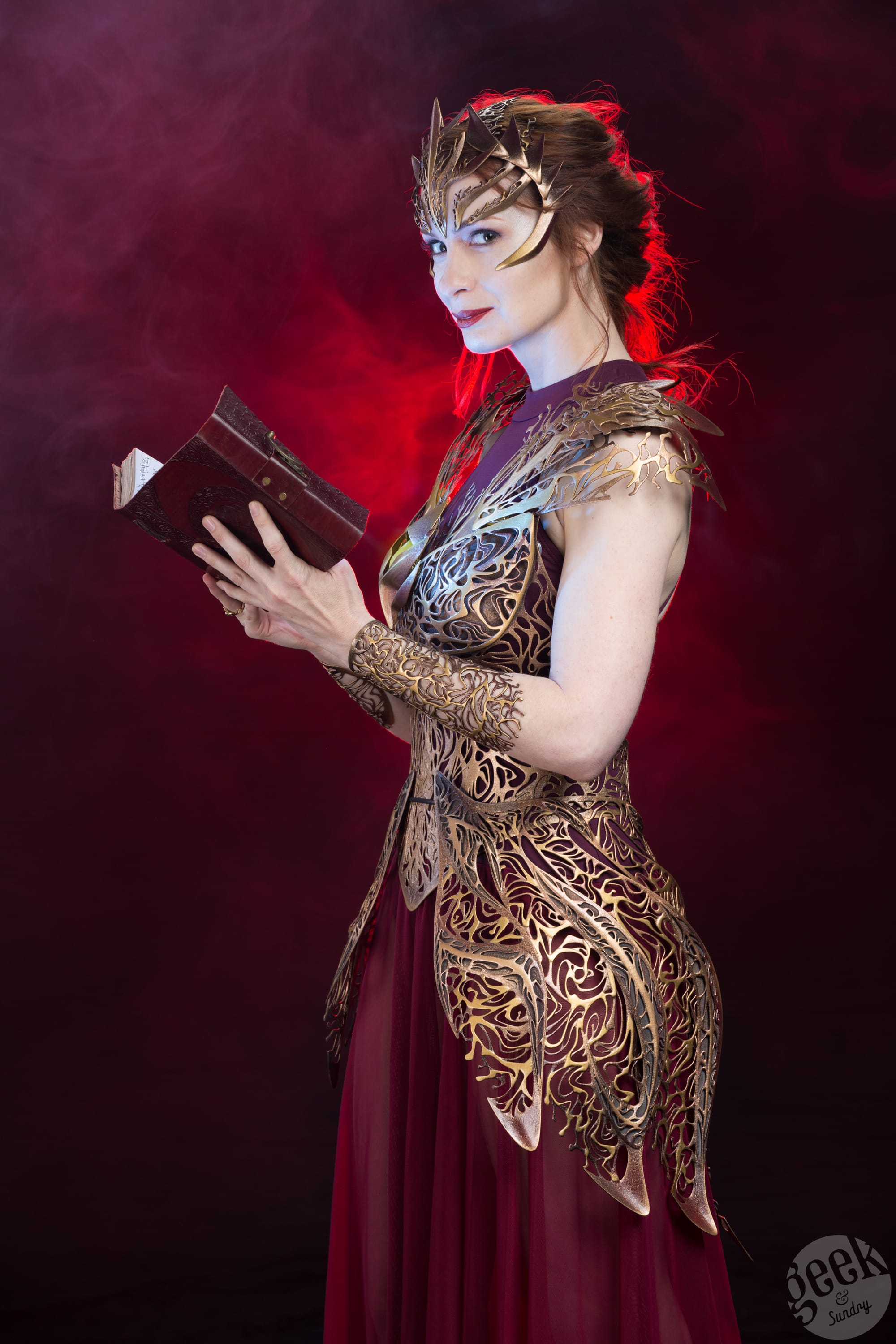 Today’s accidentally found art comes via Geek & Sundry’s article: “The Future of Cosplay, Today! Felicia Day Models 3D Printed Armor” (more images and photoshoot video at the link), in which the armor in question was designed by Melissa Ng (link to her work here, and seriously, check it out; it’s well worth it).